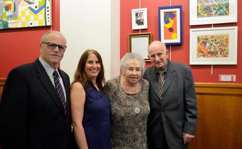 Despite having physical challenges, Howie Stone lead a colorful life, producing artwork that continues to inspire. Howie’s ability to connect with people through creative expression was recently celebrated as part of an exhibit entitled Rhapsody in Color, held at Weill Cornell Medical School’s Samuel J. Wood Library on Manhattan’s Upper East Side. The showcase was organized by the National League of American Pen Women-Manhattan NYC Branch (NLAPW). On Thursday, April 14, 2016, Howie’s family, including his mother Dorothy, his father Bill (a member of the AHRC NYC Board of Directors), and his sister Linda Schwartz, attended the exhibition, honoring Howie’s life and artistic accomplishments. Also in attendance were a number of AHRC NYC executives and staff who had worked closely with him.